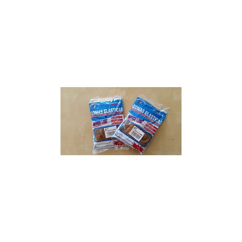 Anillos elásticos de caucho natural vulcanizado, de 2mm grosor. Se presentan en bolsas de 100g. Unidad de venta 100g.
